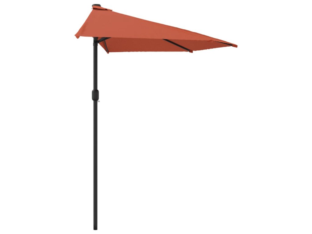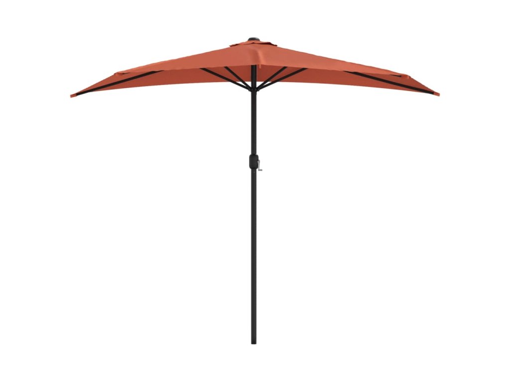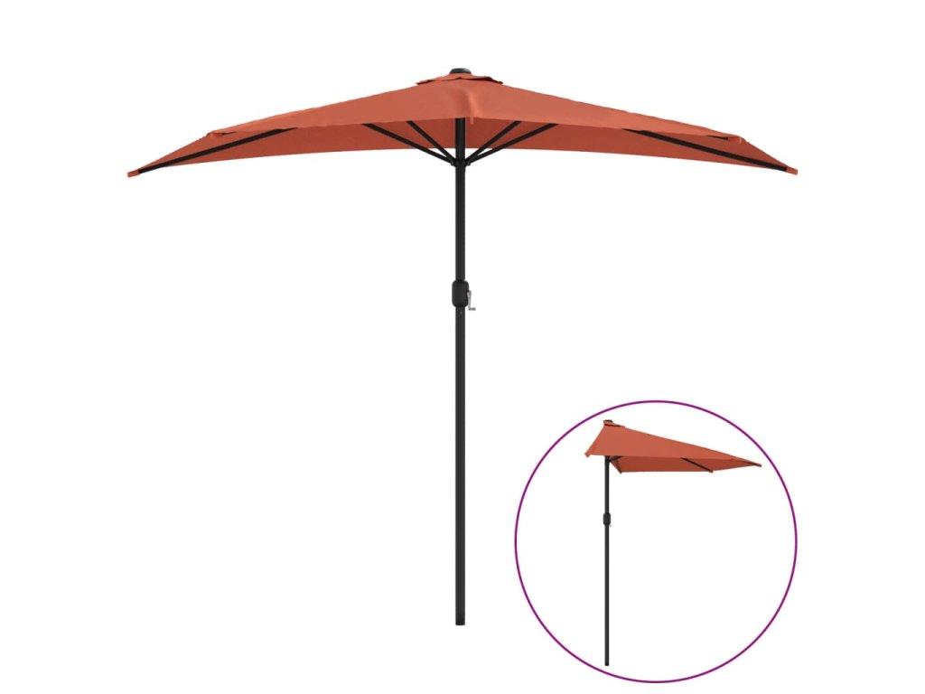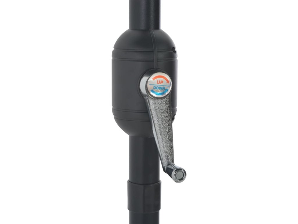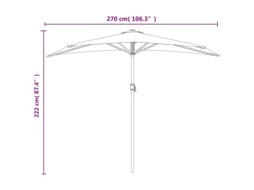 Stříška slunečníku je vyrobená z polyesterové tkaniny, která nepropouští škodlivé UV záření, poskytne vám tedy optimální ochranu před sluncem. Navíc nevybledne a snadno se čistí. Průměr tyče je 38 mm a můžete ji namontovat do stojanu na slunečník nebo doprostřed stolů s otvorem na slunečník. Půlkruhový design dodává slunečníku jedinečné kouzlo. Silná hliníková tyč s 5 pevnými ocelovými žebry zajišťuje, že se slunečník nehýbe a hodně toho vydrží. Zahradní slunečník disponuje klikovým mechanismem, což umožňuje jednoduché otevírání i zavírání.