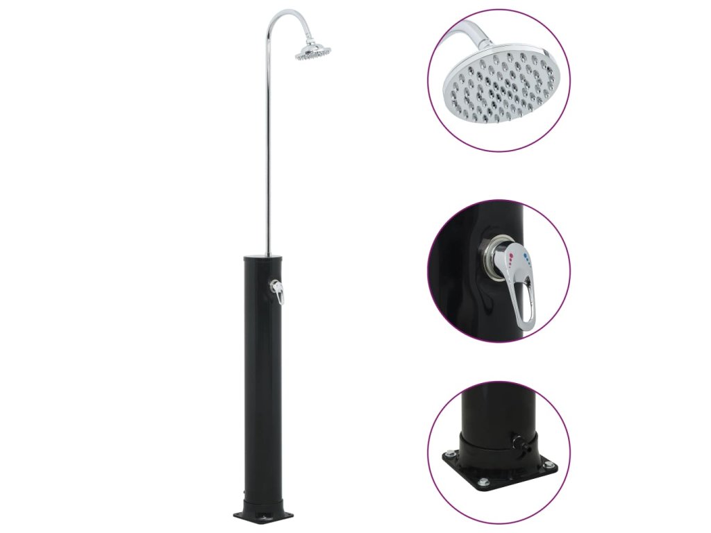 Jelikož není třeba žádný systém ohřívání vody, je tato solární sprcha energeticky úsporná. Tato venkovní sprcha je vyrobena z nerezové oceli, která je odolná a neobsahuje žádné nebezpečné chemikálie. Černé tělo přispívá k rychlému načerpání solární energie za slunečných dní. Voda se může zahřát až na 60 °C. Zahradní sprcha disponuje praktickou funkcí pro nastavení teploty vody, takže si můžete snadno určit poměr teplé a studené vody. Je též možné ji připojit k jakékoli běžné zahradní hadici aniž by bylo třeba provádět další instalatérské práce.