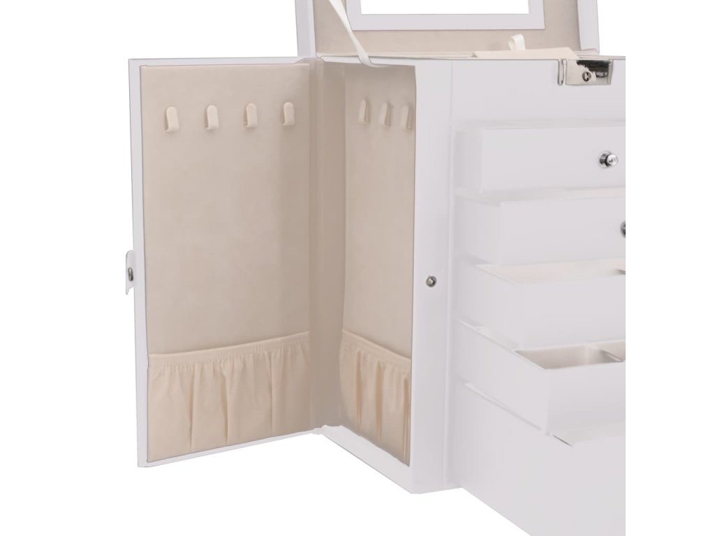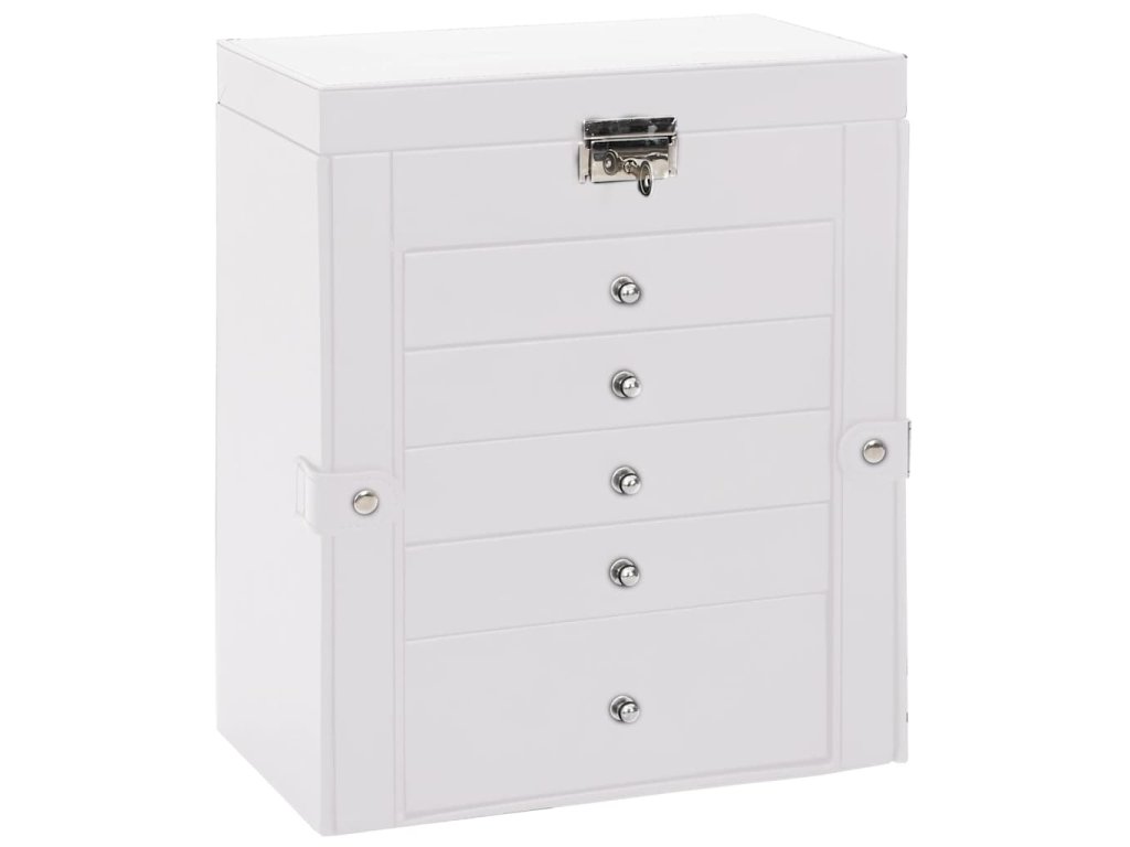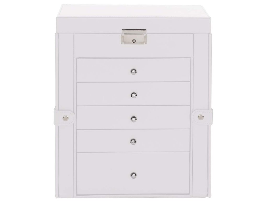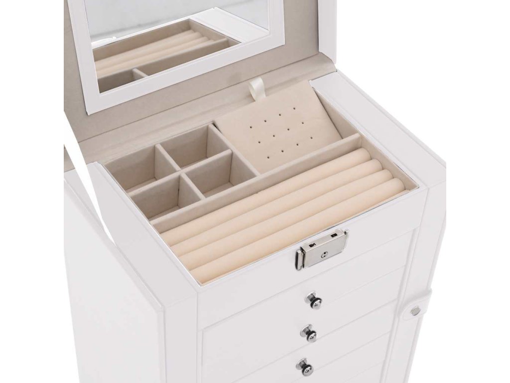 - Bezpečné uložení: Tato šperkovnice je vybavena uzamykatelnou horní vrstvou, která zajišťuje větší bezpečnost drahocenných šperků. Je vybavena odpovídajícími klíči a zajišťuje bezpečné uložení a ochranu cenností.