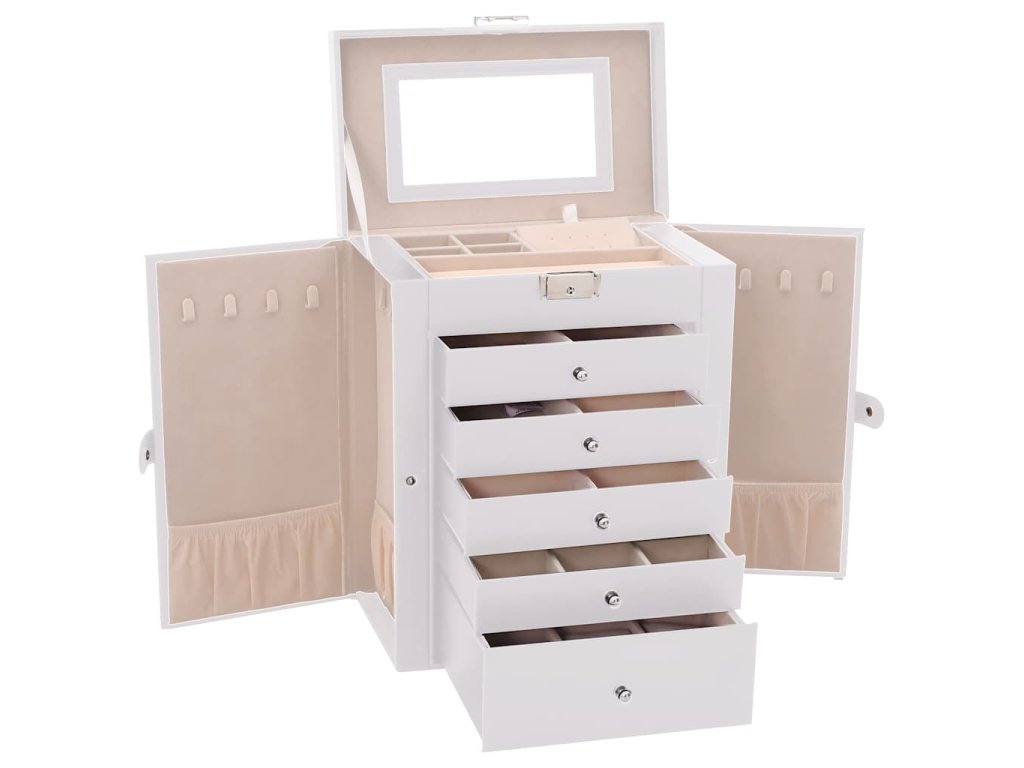 Snadno si uspořádejte svou sbírku šperků pomocí šestivrstvé šperkovnice, která je navržena tak, aby spojovala eleganci a praktičnost.