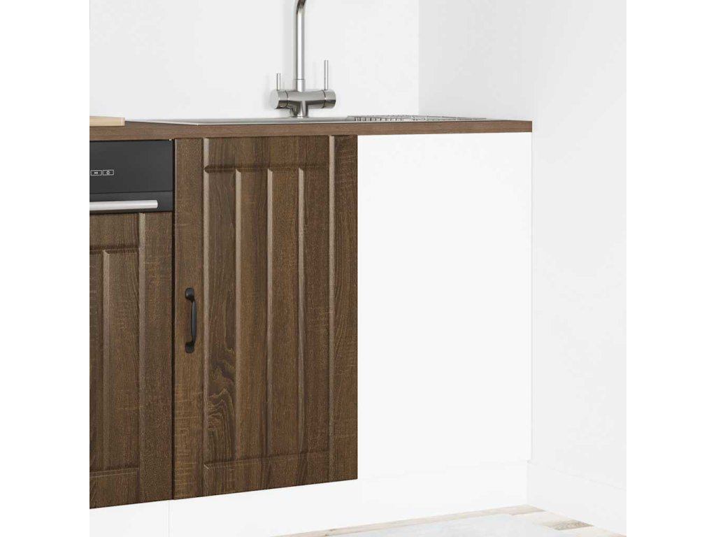 - Praktické dveře: Dvířka pomáhají udržovat čistý a uspořádaný prostor tím, že za nimi jsou schovány kuchyňské spotřebiče a nepořádek.