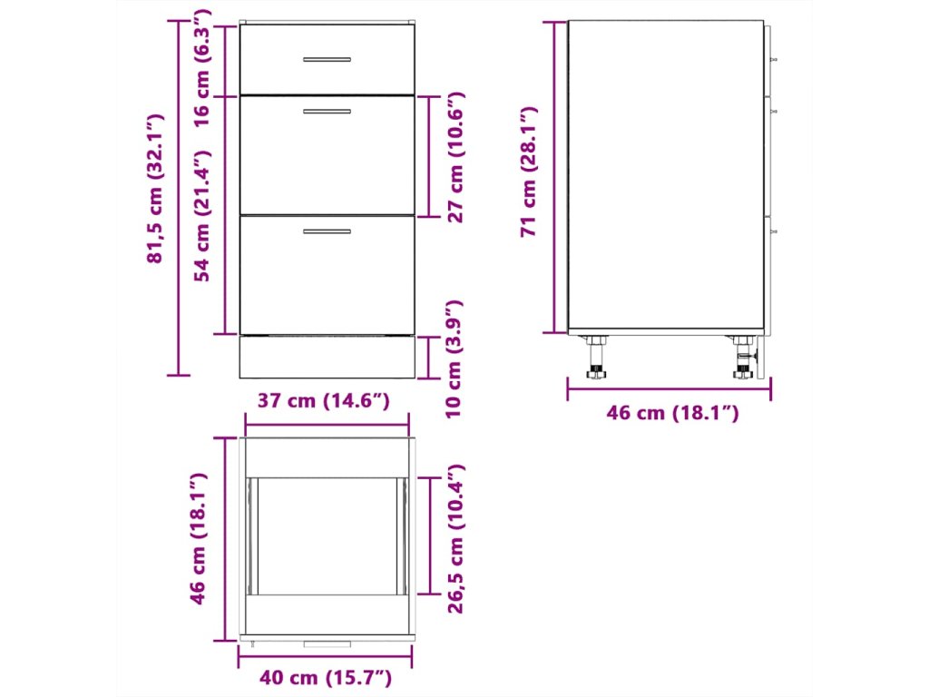 40 x 46 x 81.5 cm