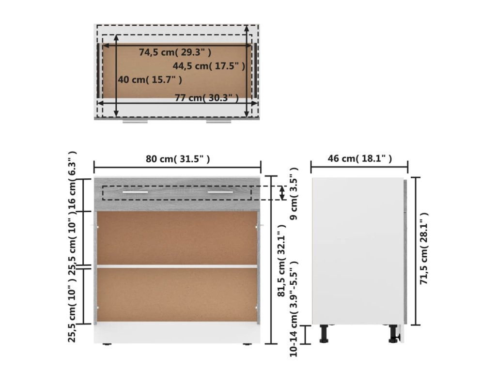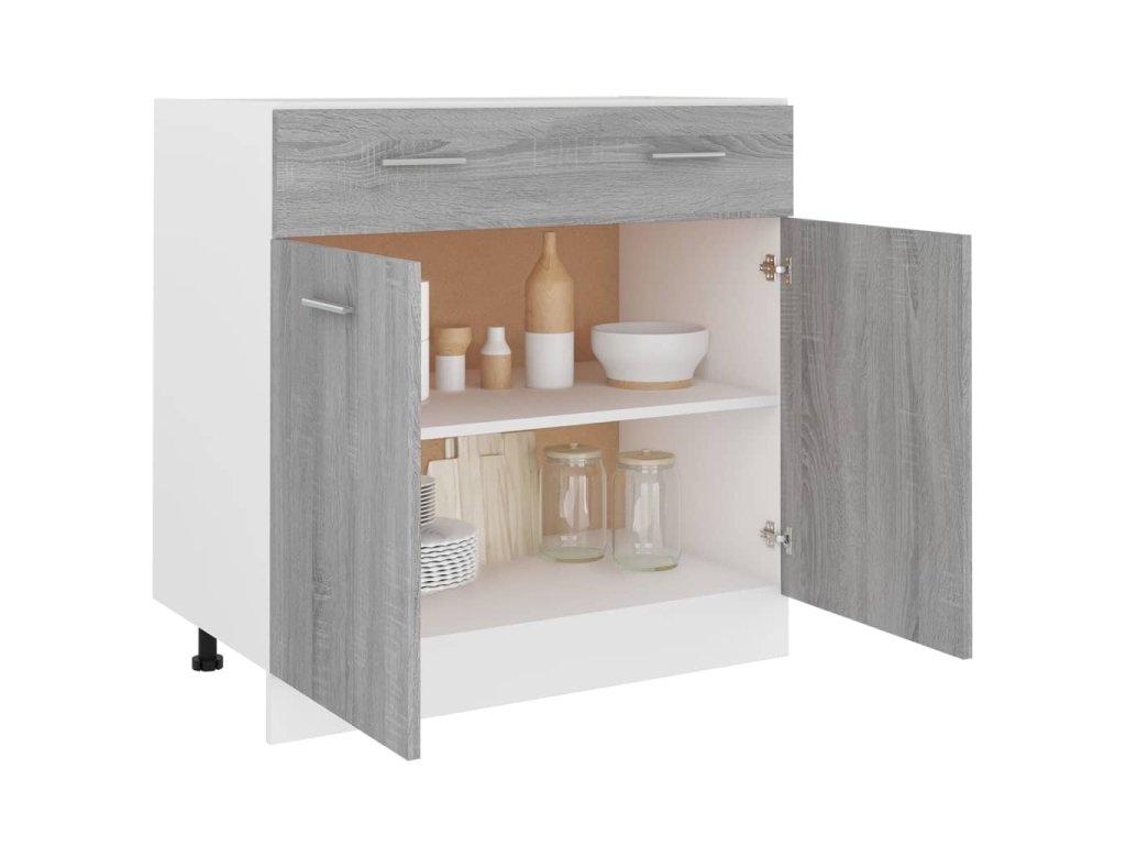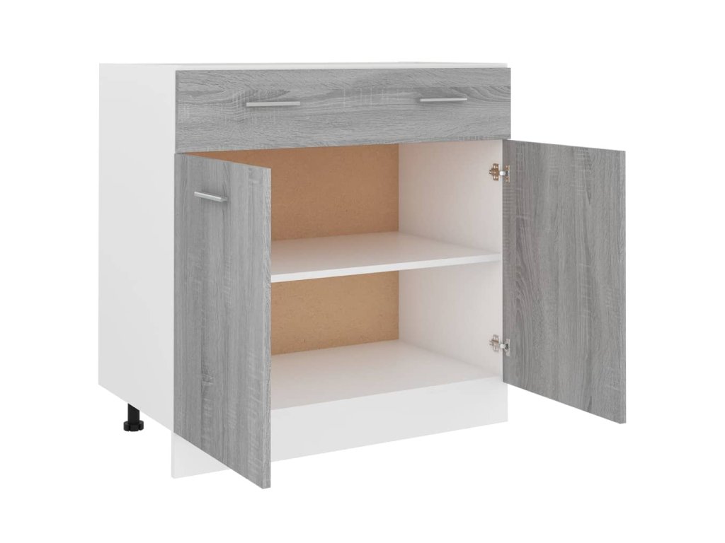 - Spousta úložného prostoru: Skříňka má jednu zásuvku a dvě přihrádky a nabízí dostatek prostoru pro uložení misek, talířů, hrnců nebo kuchyňských spotřebičů.