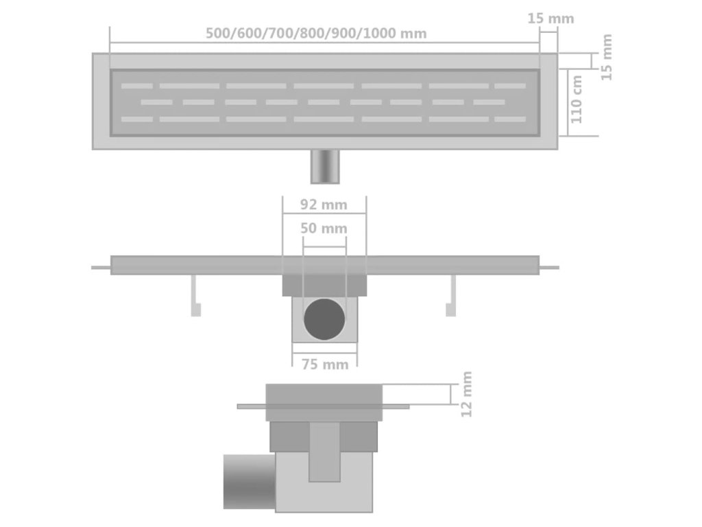 - Rozměry odtokové mřížky: 600 x 110 mm (D x Š)