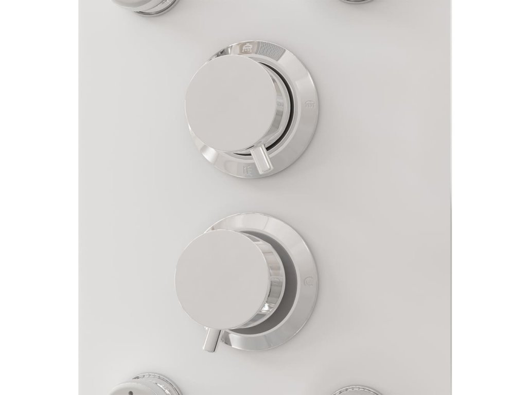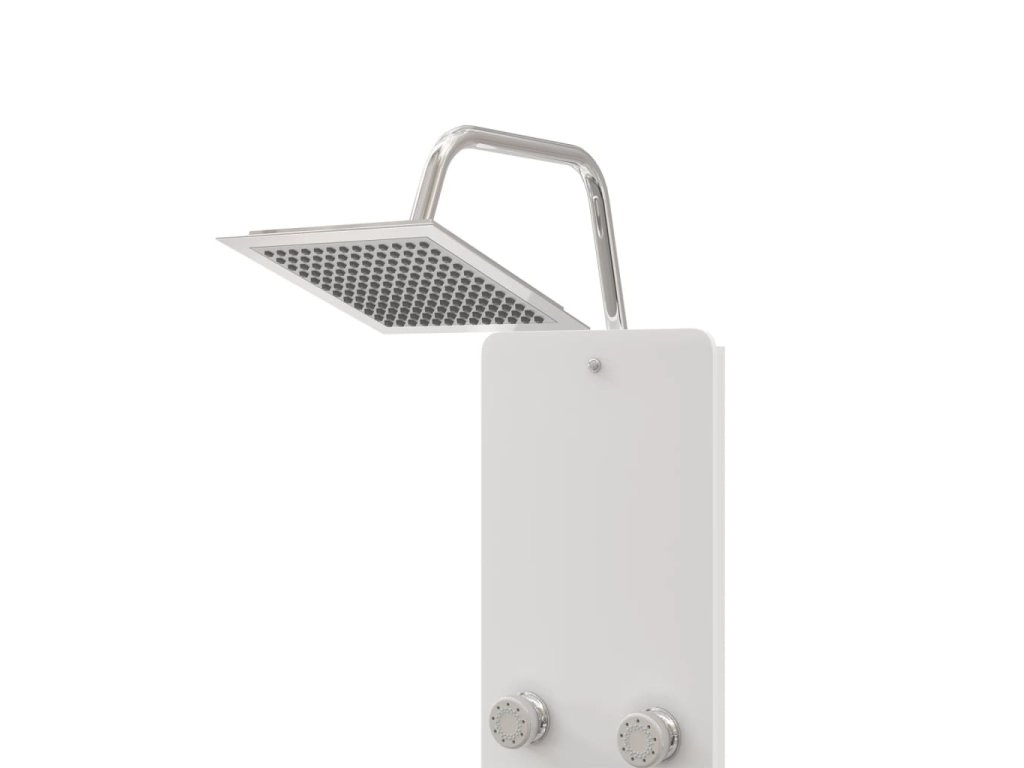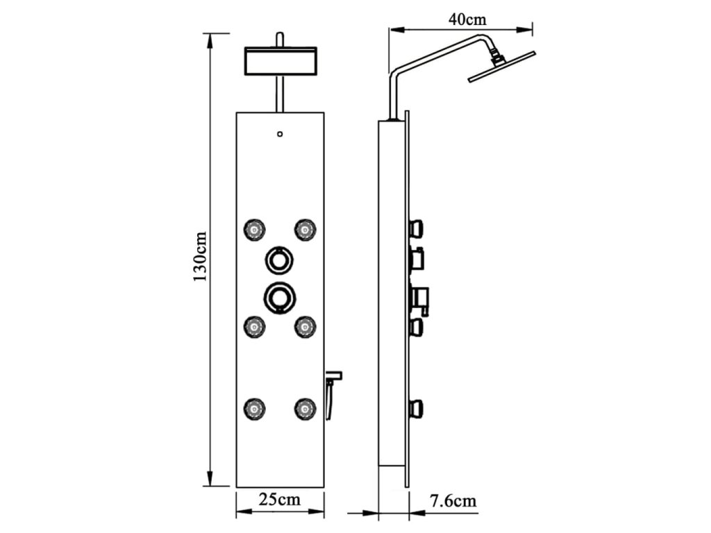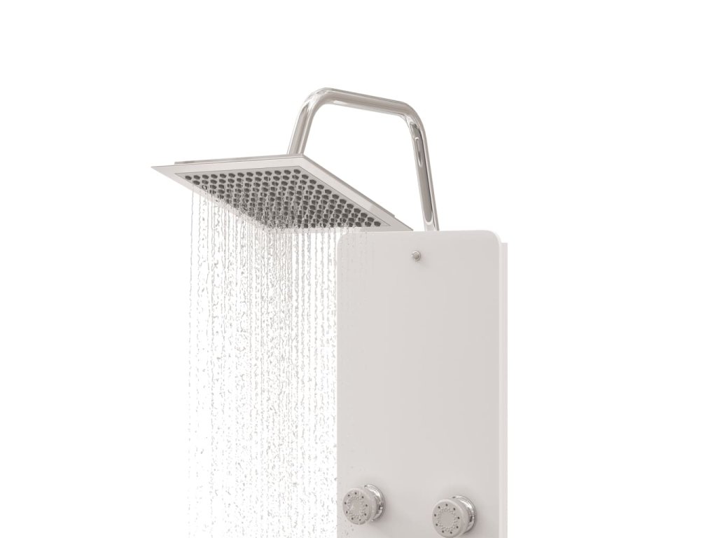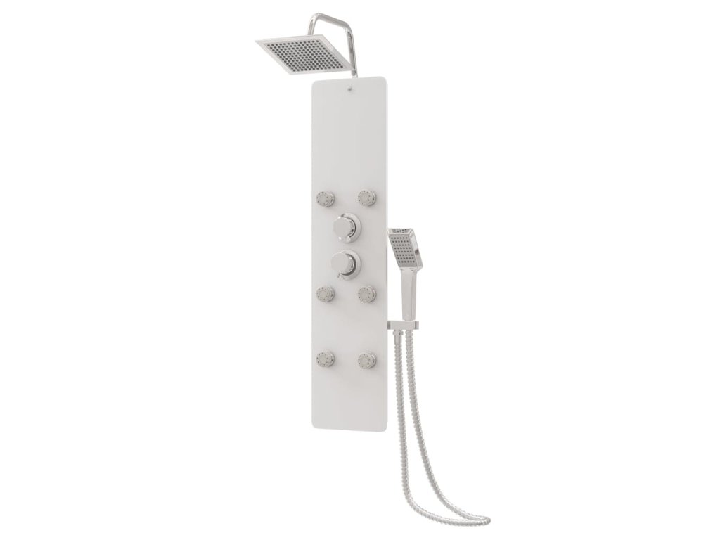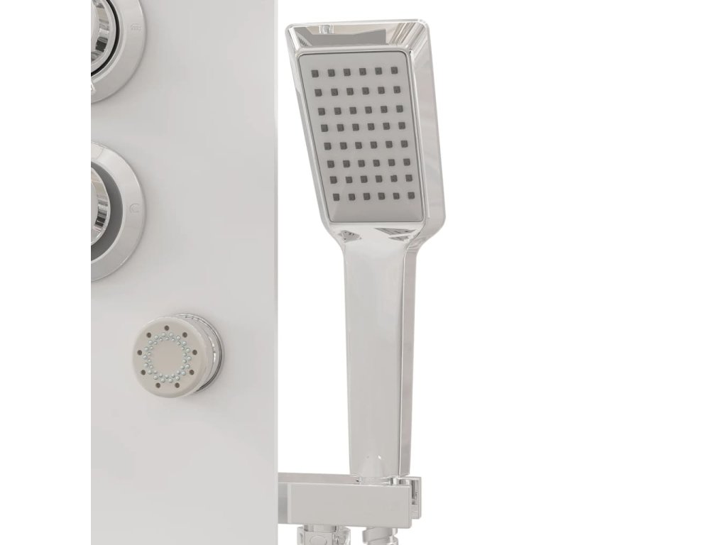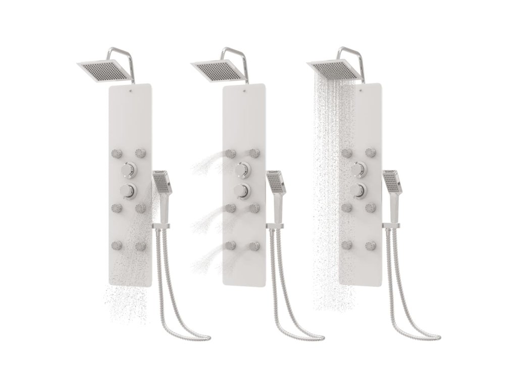 Sprchový panel je vyroben z nerezové oceli a tvrzeného skla. Tvrzené sklo se vyrábí řízeným tepelným nebo chemickým zpracováním, je tedy mnohem odolnější a bezpečnější než běžné sklo. Panel nabízí tři funkce způsobu sprchování: tropický déšť, hydromasážní trysky a ruční sprchu, mezi nimiž se dá snadno přepínat. Silikonové trysky jsou odolné vůči usazování vodního kamene.