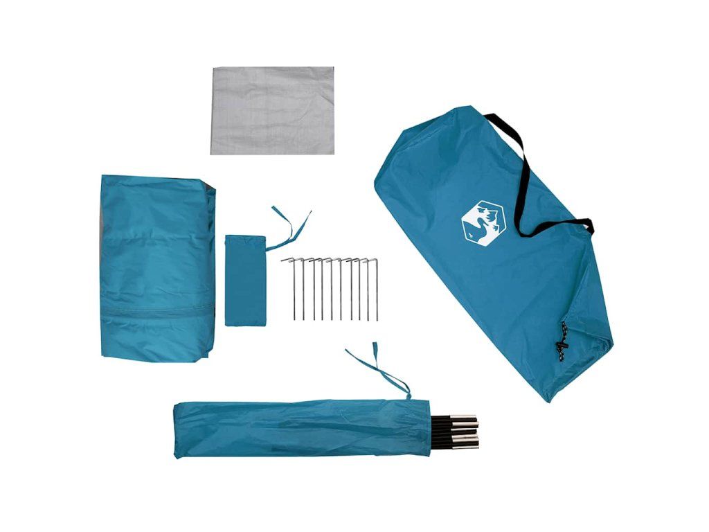 - Snadné stavění i balení: Díky vysoce flexibilním a lehkým tyčím ze skelných vláken a praktickému systému spojování pomocí kolíků a kroužků je stavění i balení stanu hračkou.