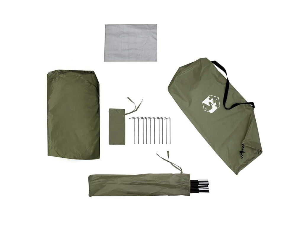 - Snadné stavění i balení: Díky vysoce flexibilním a lehkým tyčím ze skelných vláken a praktickému systému spojování pomocí kolíků a kroužků je stavění i balení stanu hračkou.