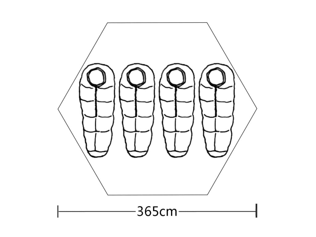 - Vnitřní prostor na spaní: 300 x 300 cm (D x Š)