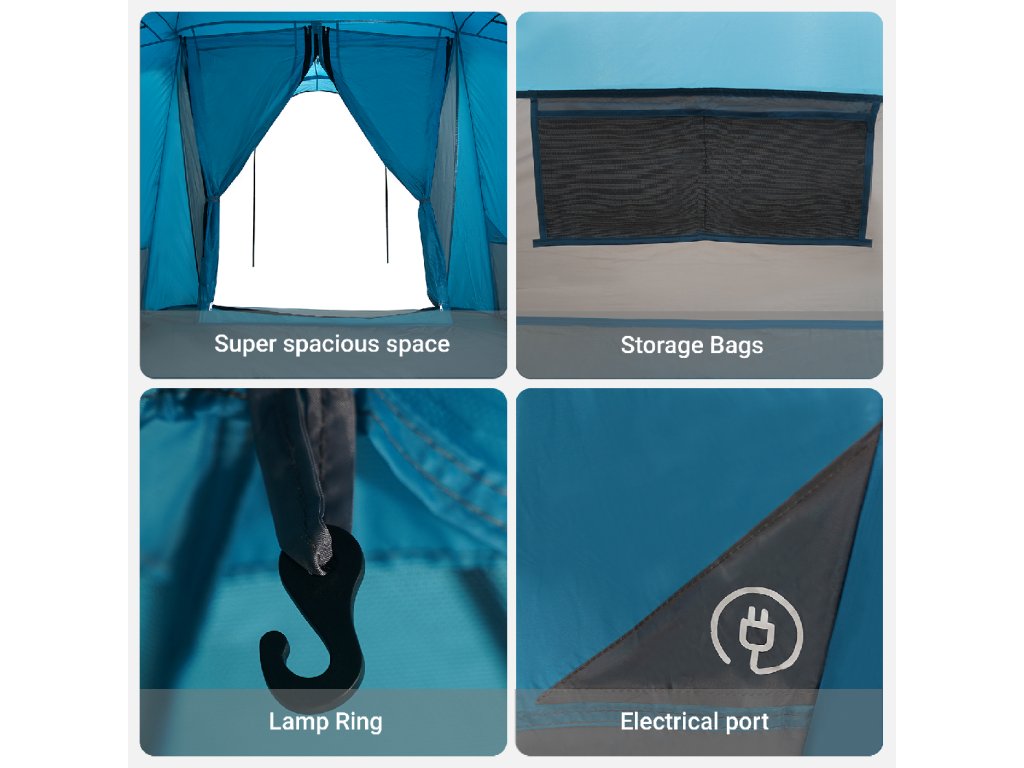 Tento kempovací stan je pro všechny milovníky přírody, co chtějí pohodlné a praktické místo během svých dobrodružství. S výraznou modrou barvou a moderním stylem to je skvělý kousek do každého kempovacího vybavení a slibuje útulné místo pro až čtyři lidi, a přitom vás chrání před počasím.