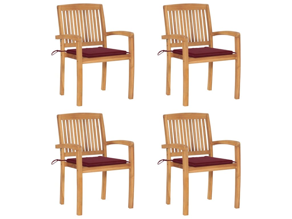 Nábytek je zhotovený z extrémně odolného teakového dřeva, které již prošlo procesem smršťování, bylo uměle vysušené a poté jemně a dohladka obroušené. Toto tvrdé dřevo je oceňované pro svou výjimečnou pevnost a klimatickou odolnost, a proto představuje zdaleka nejvhodnější materiál pro výrobu zahradního nábytku. Jedná se o skvělou volbu, pokud si chcete pořídit zahradní vybavení, které vám vydrží sloužit dlouhá léta. K údržbě a čištění vám postačí navlhčený hadřík. Jídelní židle lze navíc stohovat, když je zrovna nepoužíváte, aby vám zbytečně nezabíraly místo. O komfort se vám postarají přiložené podušky. Každá z nich je opatřená 2 páry šňůrek, za které ji k židli můžete pevně přivázat.