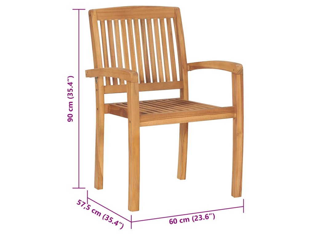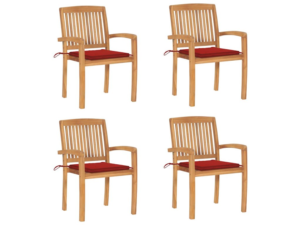 Nábytek je zhotovený z extrémně odolného teakového dřeva, které již prošlo procesem smršťování, bylo uměle vysušené a poté jemně a dohladka obroušené. Toto tvrdé dřevo je oceňované pro svou výjimečnou pevnost a klimatickou odolnost, a proto představuje zdaleka nejvhodnější materiál pro výrobu zahradního nábytku. Jedná se o skvělou volbu, pokud si chcete pořídit zahradní vybavení, které vám vydrží sloužit dlouhá léta. K údržbě a čištění vám postačí navlhčený hadřík. Jídelní židle lze navíc stohovat, když je zrovna nepoužíváte, aby vám zbytečně nezabíraly místo. O komfort se vám postarají přiložené podušky. Každá z nich je opatřená 2 páry šňůrek, za které ji k židli můžete pevně přivázat.