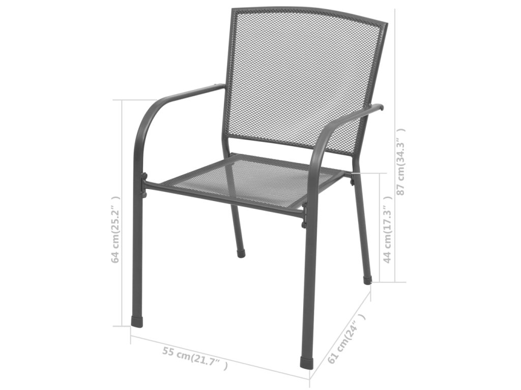 Sada vysoce kvalitních židlí je vyrobena z pevné, potažené oceli s práškovým nástřikem. Židle mají dlouhou životnost, jsou nezvykle silné a odolné vůči rzi a rozmarům počasí. Díky povrchové úpravě se také velmi snadno čistí. Pletivový design působí na pohled velmi elegantně. Pokud je zrovna nepoužíváte, můžete je pro úsporu místa naskládat na sebe.