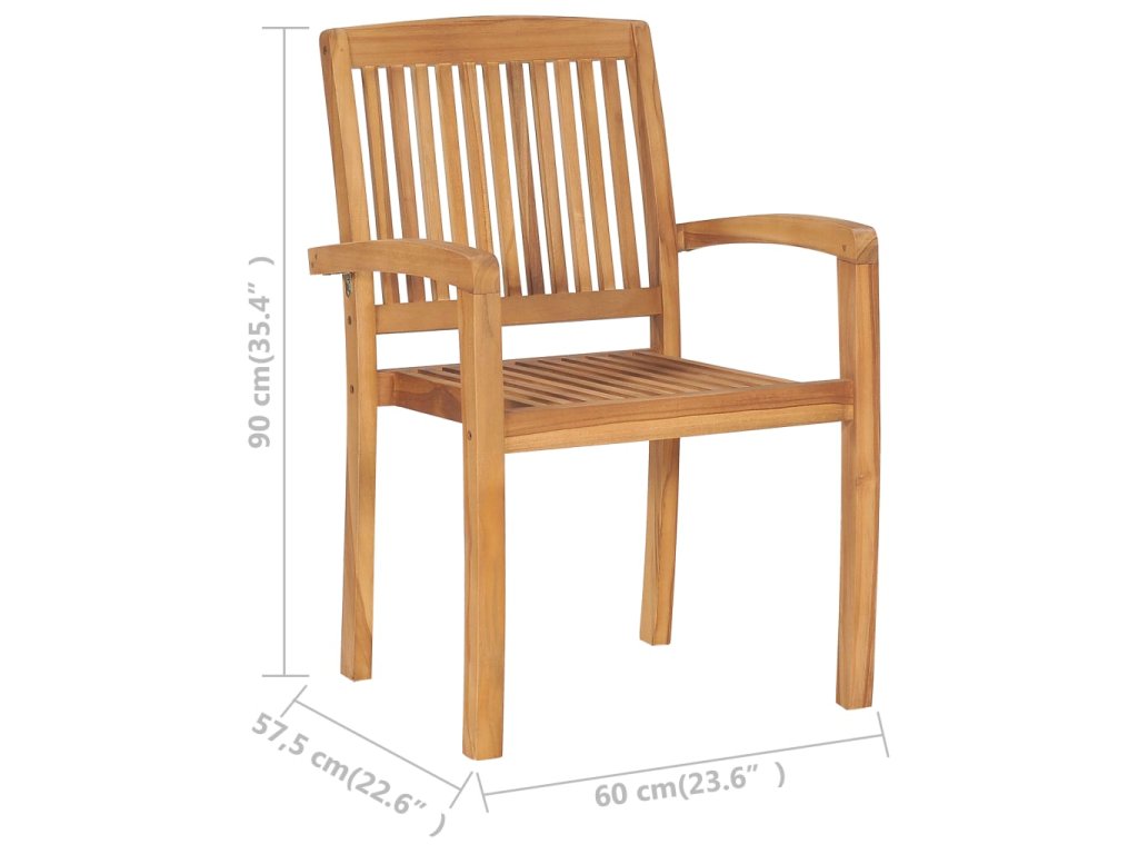 Nábytek je zhotovený z extrémně odolného teakového dřeva, které již prošlo procesem smršťování, bylo uměle vysušené a poté jemně a dohladka obroušené. Toto tvrdé dřevo je oceňované pro svou výjimečnou pevnost a klimatickou odolnost, a proto představuje zdaleka nejvhodnější materiál pro výrobu zahradního nábytku. Jedná se o skvělou volbu, pokud si chcete pořídit zahradní vybavení, které vám vydrží sloužit dlouhá léta. K údržbě a čištění vám postačí navlhčený hadřík. Jídelní židle lze navíc stohovat, když je zrovna nepoužíváte, aby vám zbytečně nezabíraly místo. O komfort se vám postarají přiložené podušky. Každá z nich je opatřená 2 páry šňůrek, za které ji k židli můžete pevně přivázat.