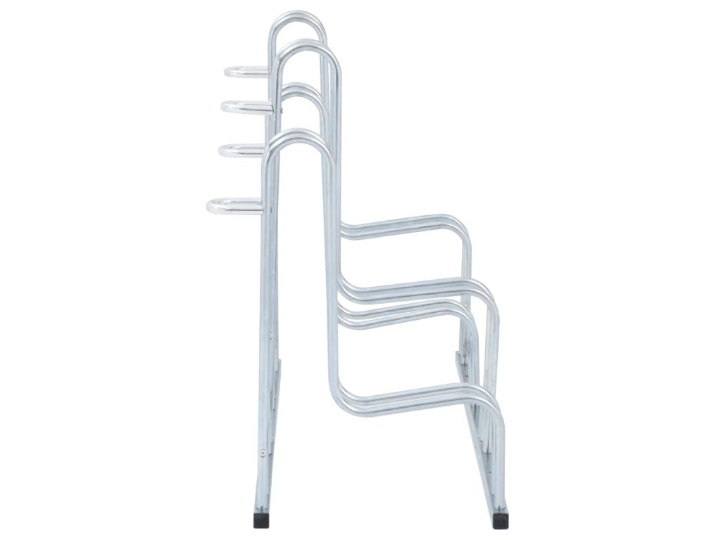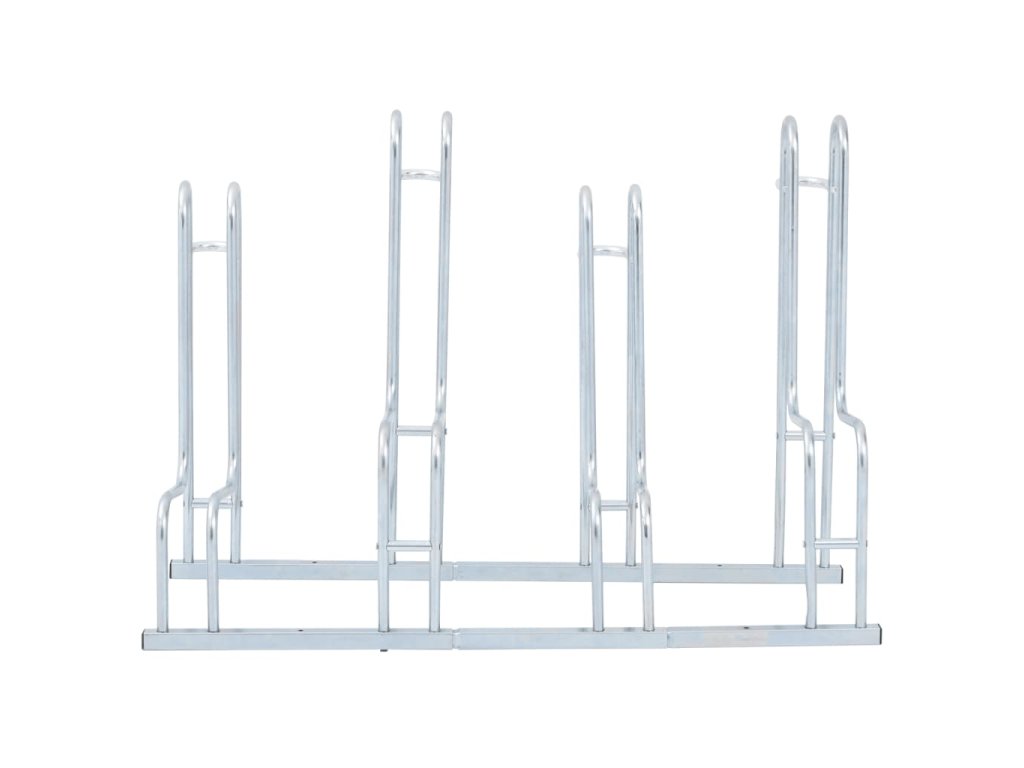 - Úspora místa: Tento stojan na kola má konstrukci s různými polohami pro umístění kol a pojme čtyři kola najednou, aniž by docházelo k zamotání řídítek, čímž optimalizuje prostor pro efektivní parkování.