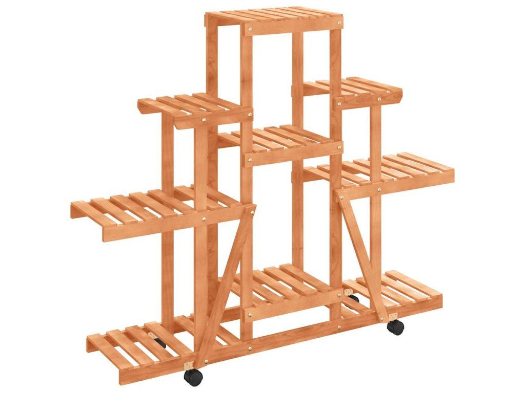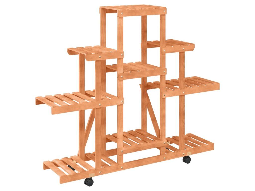 Tento dřevěný stojan na květiny na kolečkách je skvělou volbou k umístění a vystavení vašich rostlin, knih a dalších dekorativních předmětů.