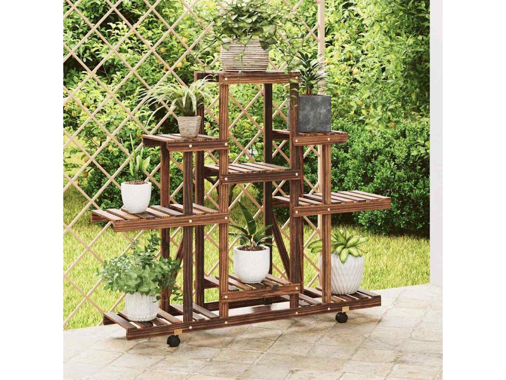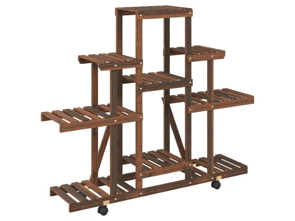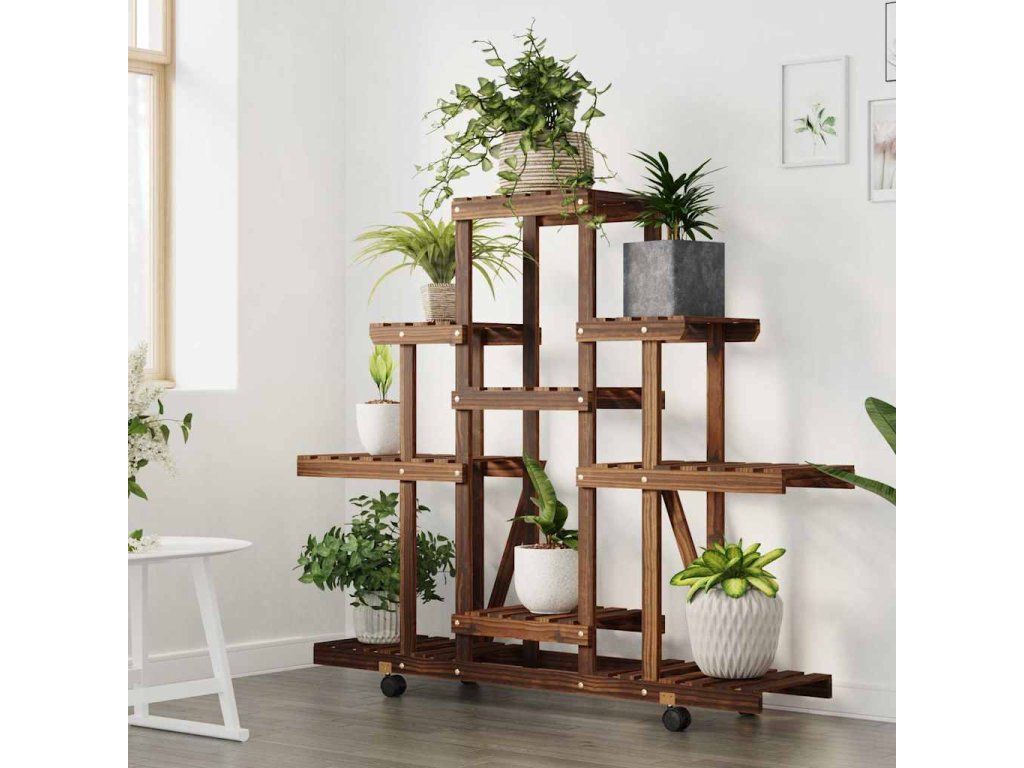 Tento dřevěný stojan na květiny na kolečkách je skvělou volbou k umístění a vystavení vašich rostlin, knih a dalších dekorativních předmětů.