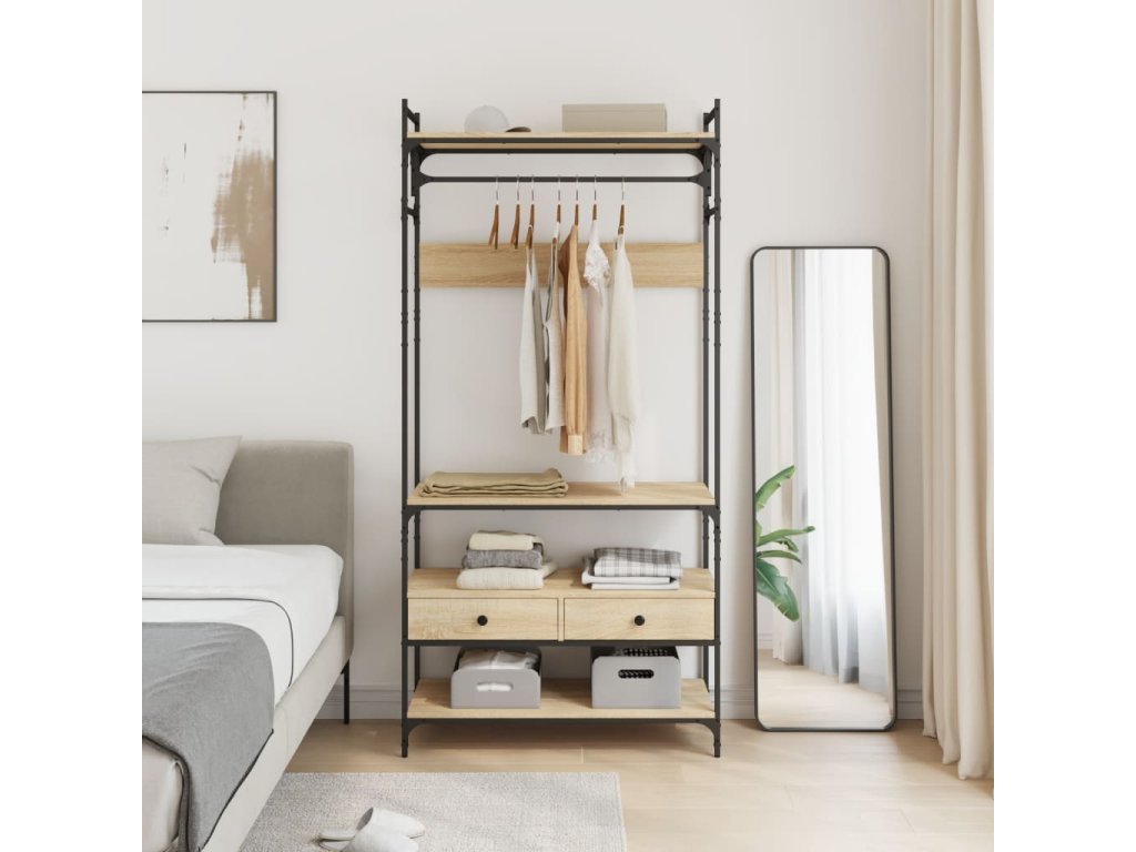 - Spousta úložného prostoru: Stojan na oblečení nabízí spoustu místa, kde si můžete uspořádat své oblečení a tašky či kabelky. Horní police se výtečné hodí k uschování krabic nebo složeného oblečení, zatímco spodní police je vhodná pro boty. Delší oblečení můžete pověsit na ramínka a spodní prádlo uložit do zásuvek.