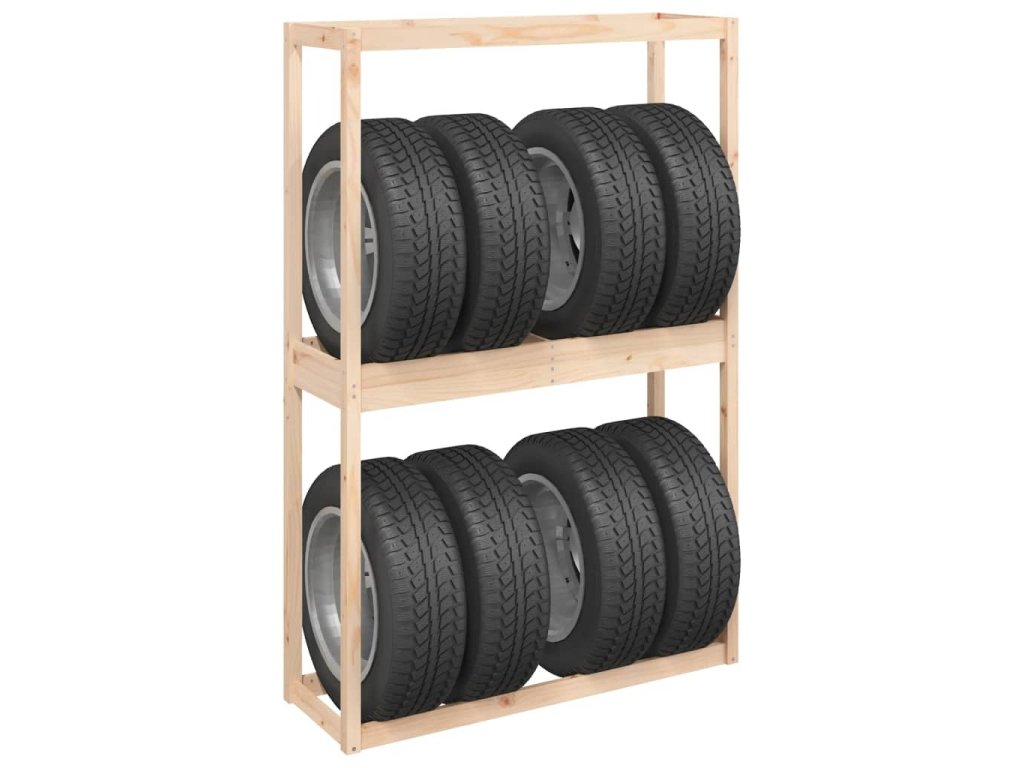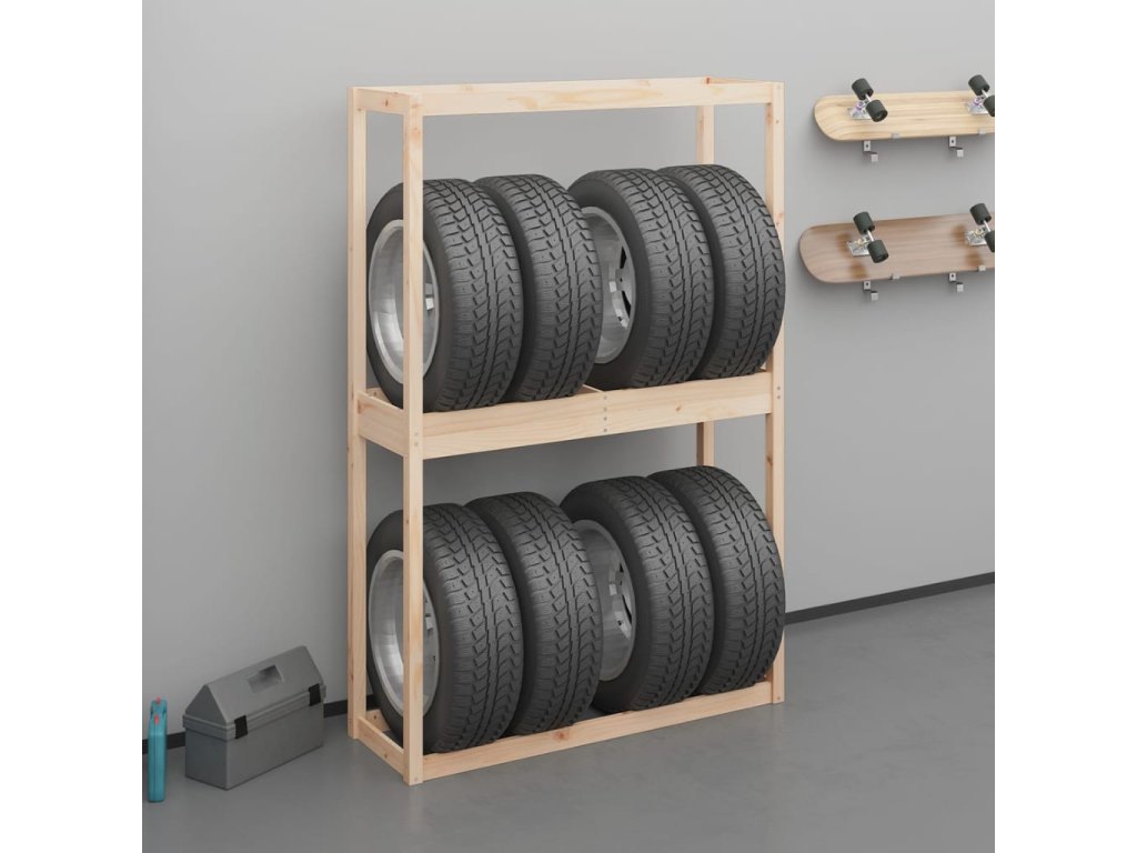 Tento dřevěný stojan na pneumatiky je vynikající volbou pro garážové skladování a poskytuje dostatek prostoru pro úhledné uspořádání pneumatik.