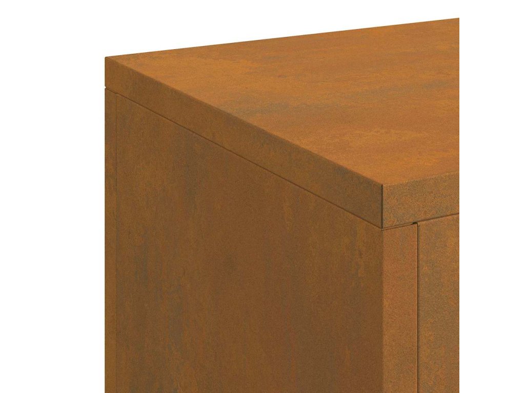 - Tento produkt ještě není zrezivělý, a když jej obdržíte, má normální kovovou barvu, která časem zreziví. Proces rezivění můžete urychlit postříkáním mýdlovou vodou a slanou vodou. Aby vaše oblečení zůstalo beze skvrn, vyhněte se kontaktu se vznikající vrstvou rzi.