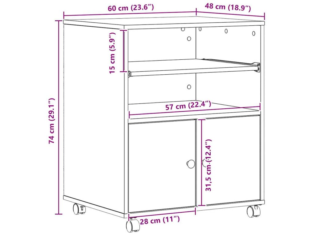 - Konstrukce z kompozitního dřeva Tenký a odolný materiál, který zajišťuje dlouhou životnost. Poskytuje stabilní základ pro různé tiskárny a odolává každodennímu používání. Jeho moderní vzhled dodává styl do vaší kanceláře.