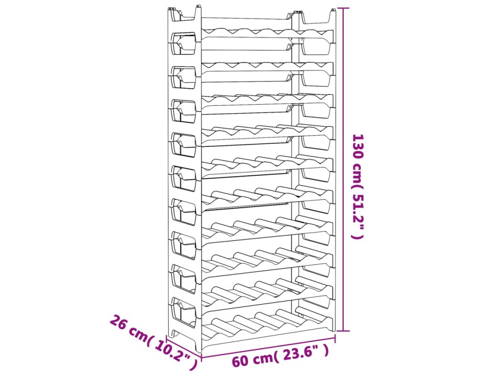 - Stabilní materiál: Regál na víno je vyroben z polypropylenu (PP), který je odolný vůči UV záření, povětrnostním vlivům a je stabilní, takže zajistí bezpečnost vašich vín.