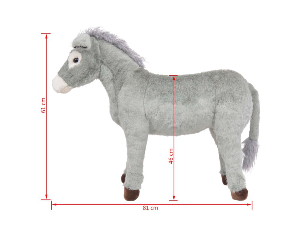 Tato měkoučká hračka s detailním provedením je vyrobená z pevného ocelového rámu a vysoce kvalitního plyše. Hračka unese až 100 kg, vaše děťátko na ní tedy může sedět jako na židličce nebo i jezdit. Naše plyšová hračka oslíka se rychle skamarádí s každým dítětem!