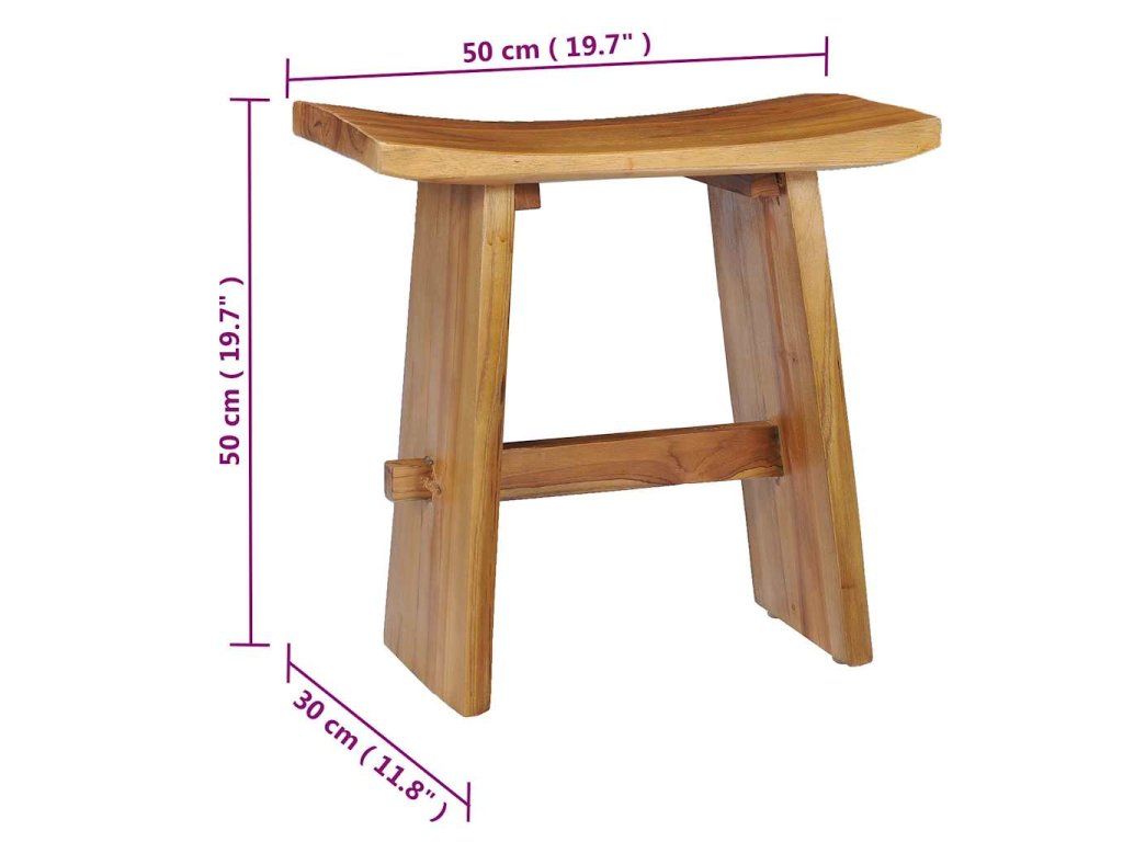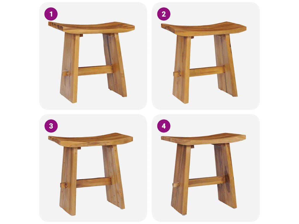 Kompaktní stolička nabízí všestranné využití, například v koupelně při mytí, v obývacím pokoji jako místo pro vaše knihy a časopisy nebo v ložnici jako zajímavý noční stolek. Na její stabilní horní desku můžete umístit nápoje, vázy, ovocné mísy a další dekorace. Stolička je vyrobená z extrémně odolného teakového tvrdého dřeva a byla vysušena metodou umělého sušení a poté jemně obroušena, aby získala velmi hladký vzhled. Teakové dřevo je známé svou mimořádnou pevností a klimatickou odolností. Teakové dřevo je perfektní volba, pokud dáváte přednost nábytku, který vám bude dlouho a dobře sloužit. Každému kroku výrobního procesu je věnována největší péče.