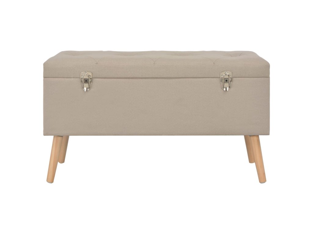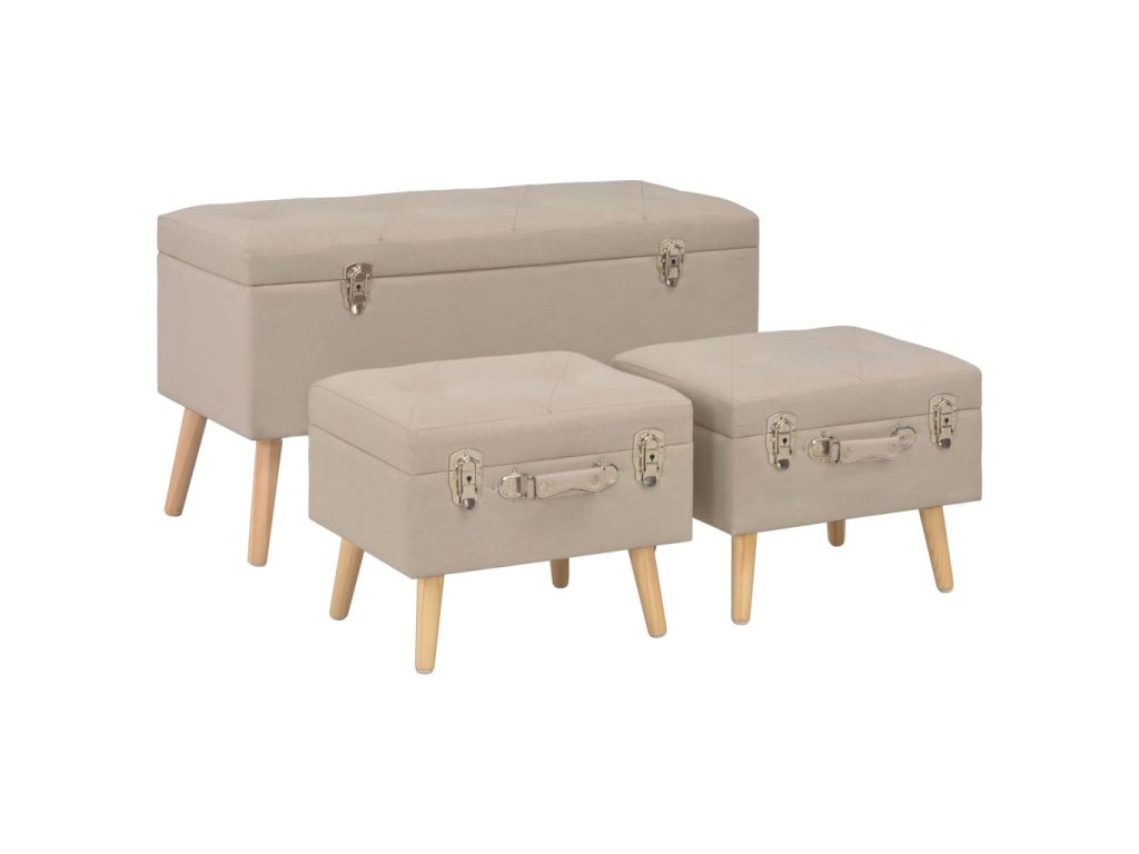 Stoličky jsou čalouněné látkou a polstrované molitanem pro zvýšené pohodlí. Nohy z masivního dřeva nejen zaručují, že jsou podnožky stabilní a odolné, ale navíc jim dodávají elegantní kouzlo. Úložný prostor pod sedáky stoliček snadno využijete jako dodatečný úložný prostor. Montáž stoliček je snadná.