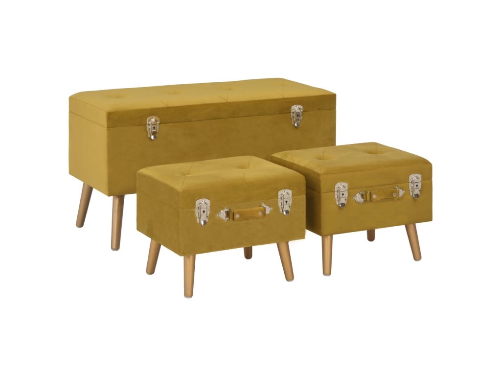Tyto taburety jsou čalouněné sametem a pro ještě větší pohodlí polstrované pěnovým molitanem. Jelikož mají nohy z masivního dřeva, jsou podnožky nejen stabilní a odolné, ale také vyzařují elegantní šarm. Kromě toho je stolička pod sedákem vybavena odkládací přihrádkou, která poskytuje další úložný prostor.