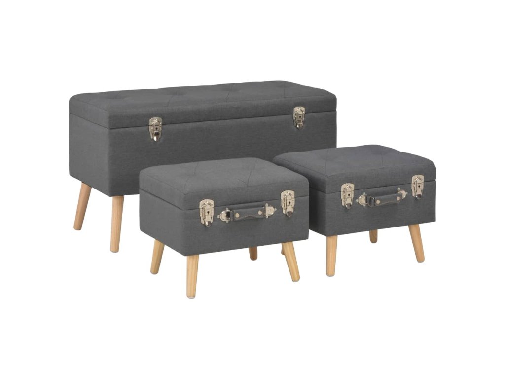 Stoličky jsou čalouněné látkou a polstrované molitanem pro zvýšené pohodlí. Nohy z masivního dřeva nejen zaručují, že jsou podnožky stabilní a odolné, ale navíc jim dodávají elegantní kouzlo. Úložný prostor pod sedáky stoliček snadno využijete jako dodatečný úložný prostor. Montáž stoliček je snadná.