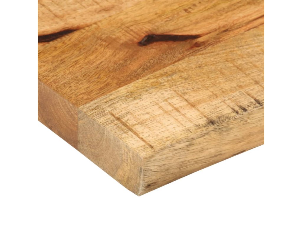 - Provedení s živou hranou: Dřevěná nábytková deska má rustikální živý okraj. Vzhledem k tomu, že suky, praskliny, mírně zakřivené tvary a barevné odstíny jsou součástí mangovníkového dřeva, má každý kus svůj jedinečný charakter.