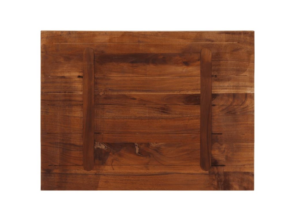- Masivní recyklované dřevo: Masivní recyklované dřevo se skládá z opakovaně použitých dřevin, jako je teak, mangovník, borovice a buk. Toto dřevo pochází ze starých staveb, jako jsou továrny, kůlny a lodě. Jelikož je každý kus ručně vyrobený, odstíny se mohou u každého z nich lišit.