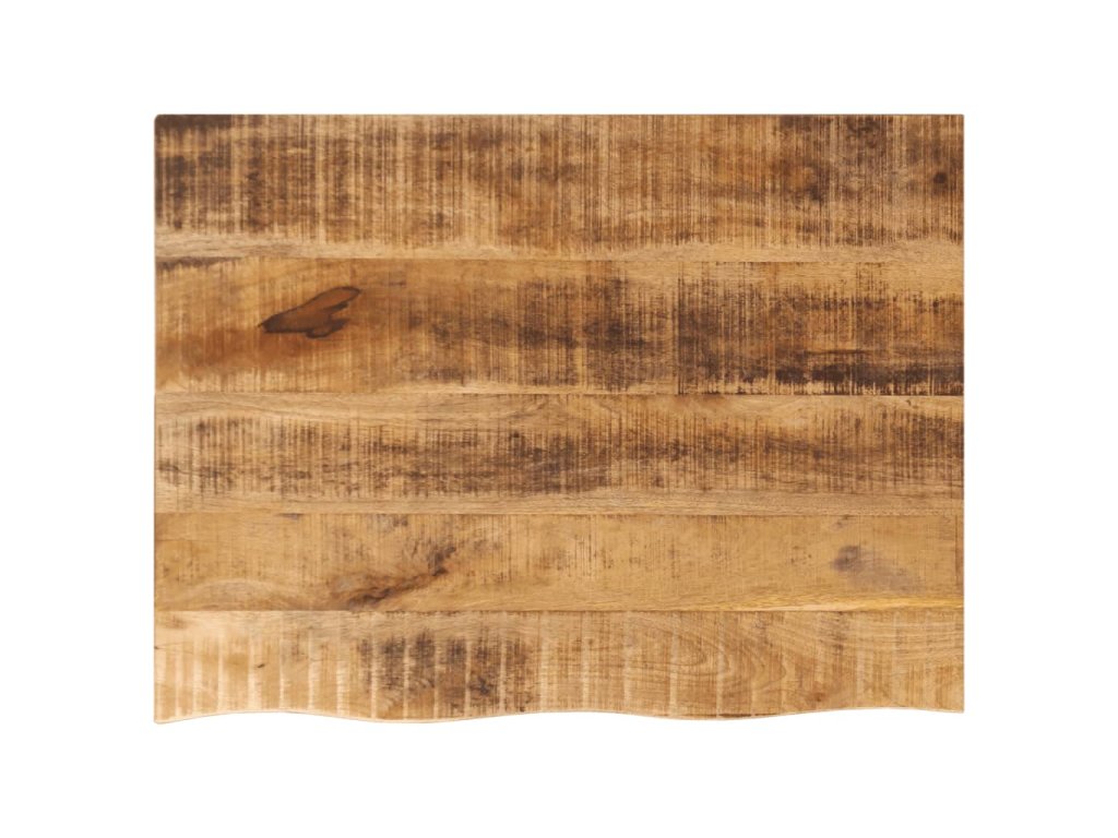 - Provedení s živou hranou: Dřevěná nábytková deska má rustikální živý okraj. Vzhledem k tomu, že suky, praskliny, mírně zakřivené tvary a barevné odstíny jsou součástí mangovníkového dřeva, má každý kus svůj jedinečný charakter.