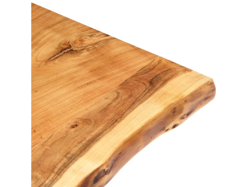 Kuchyňská stolní deska je vyrobená z masivní akácie, což je tropické tvrdé dřevo, které je husté a odolné a má dlouhou životnost. Navíc bylo vyleštěné, natřené a nalakované, takže je dobře zapouzdřené, a tudíž chráněné před vlhkostí. Deska je zhotovená z kmene stromu a kopíruje jeho přírodní hrany, a tak k vám domů přinese krásu živého dřeva.
