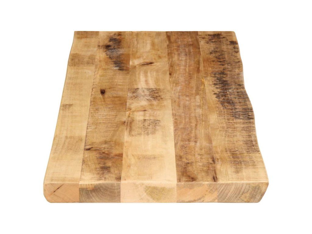 - Provedení s živou hranou: Dřevěná nábytková deska má rustikální živý okraj. Vzhledem k tomu, že suky, praskliny, mírně zakřivené tvary a barevné odstíny jsou součástí mangovníkového dřeva, má každý kus svůj jedinečný charakter.