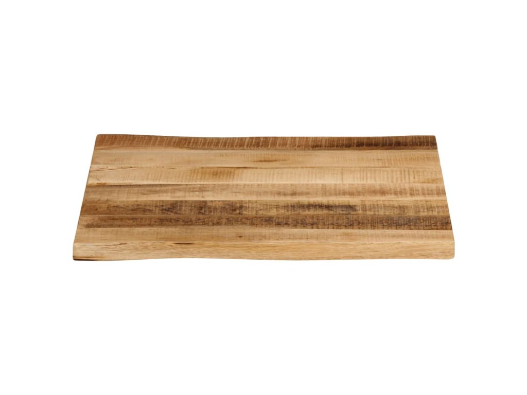- Provedení s živou hranou: Dřevěná nábytková deska má rustikální živý okraj. Vzhledem k tomu, že suky, praskliny, mírně zakřivené tvary a barevné odstíny jsou součástí mangovníkového dřeva, má každý kus svůj jedinečný charakter.
