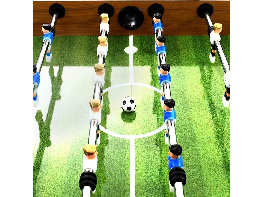 - Kompletní fotbalová sada: Tento fotbalový stůl je plně vybaven vším, co potřebujete: 2 branky, 2 fotbalové míče, 2 tabule, 8 tyčí pro hráče a 22 hráčů, což poskytuje skutečně autentický zážitek ze hry.