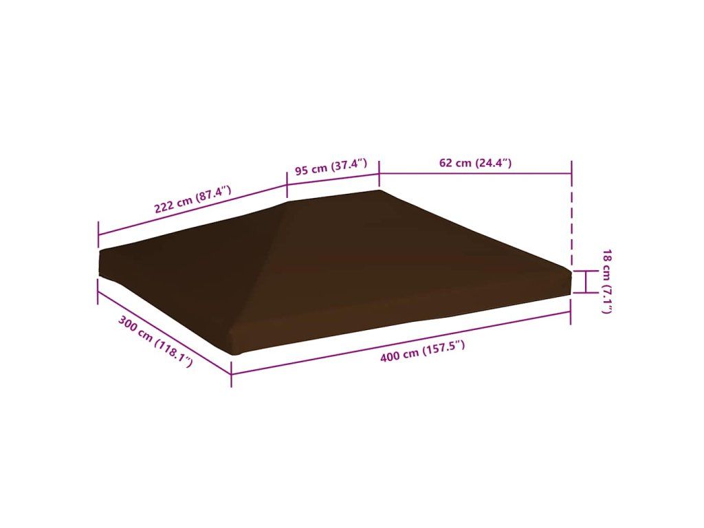 Naše náhradní střecha pro altány je vyrobená z odolného polyesteru s PVC povlakem, stříška je tudíž nepromokavá. Tato střecha vás ochrání před sluncem, deštěm a dalšími povětrnostními vlivy. Navíc má vyztužené rohy pro větší stabilitu a odolnost.