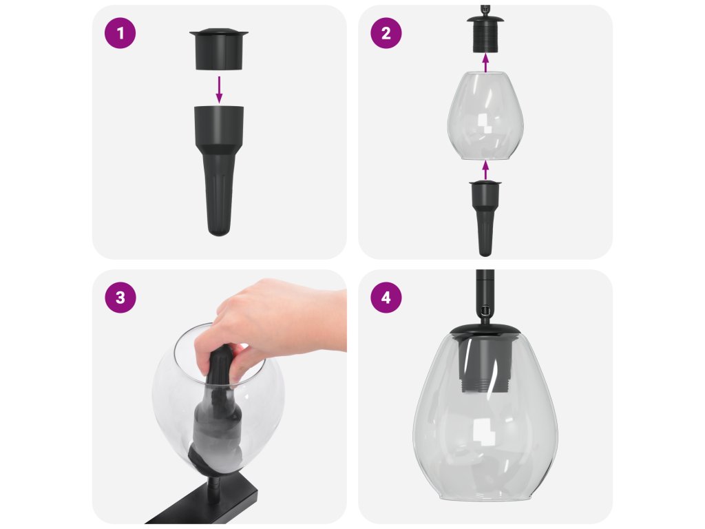 - Nastavitelné skleněné stínidlo: Umožňuje směrovat světlo tam, kde je potřeba, ideální na úkoly nebo na zvýraznění dekorací.