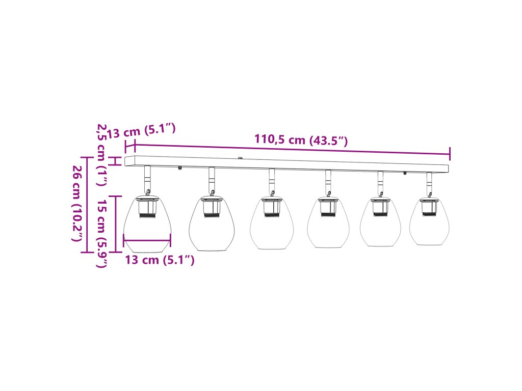 - Dodávka obsahuje: 1 lampu s 6 držáky.