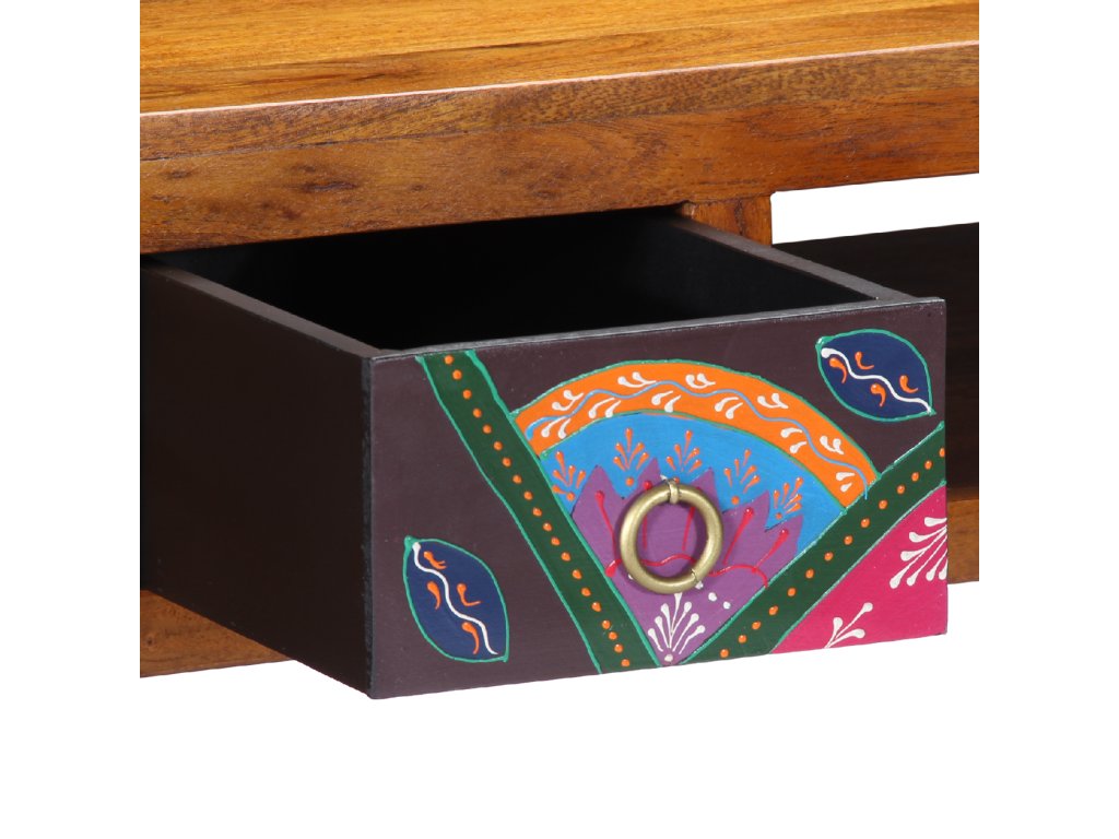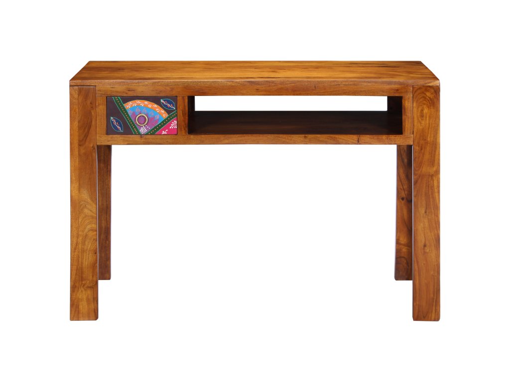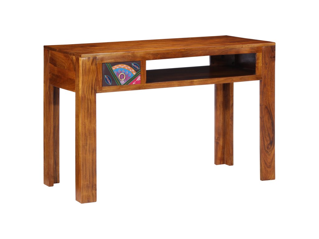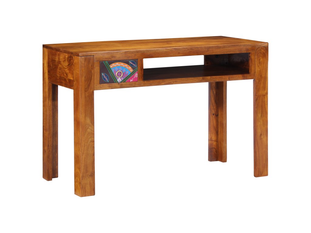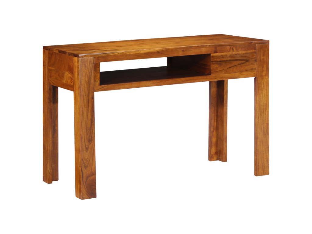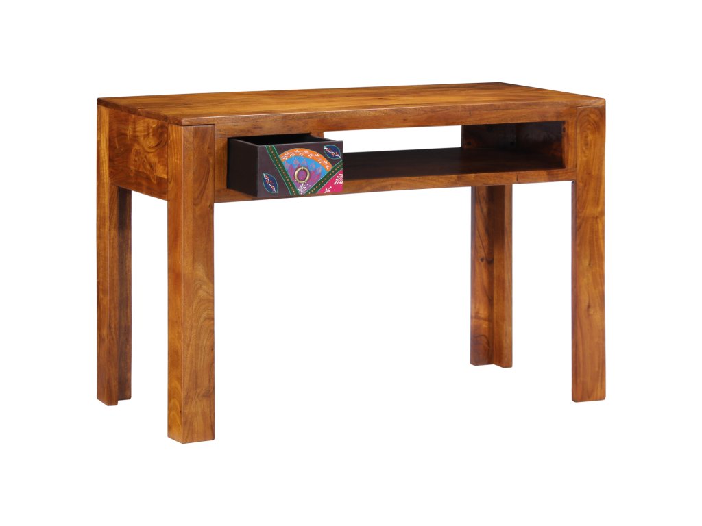 Tento stůl z masivního akáciového dřeva má hladký lakovaný povrch, takže nabízí styl i trvanlivost. S klasickým vzhledem, dostatkem úložného místa a otevřenou policí je to super volba pro domácí kanceláře, pracovny nebo ložnice.- Barva: Hnědá