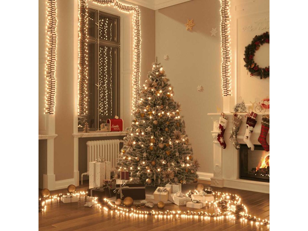 - Dlouhý světelný řetěz: Celková délka řetězu je 23 m a má 3 000 LED diod, které vytváří příjemné teplé bílé osvětlení.