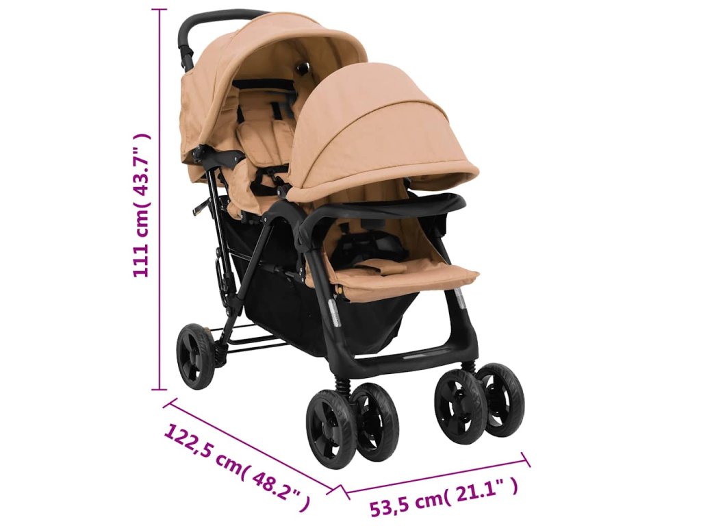 Kočárek pro dvojčata je vyrobený z oceli a lnu, takže je robustní a pohodlný. Nastavitelná stříška je navržena tak, aby děti chránila před UV zářením. Ve spodní části také naleznete úložný košík na hračky, jídlo, deku atd. Kočárek pro dvojčata lze navíc snadno a kompaktně složit, takže vám při uskladnění či přepravování ušetří mnoho místa.
