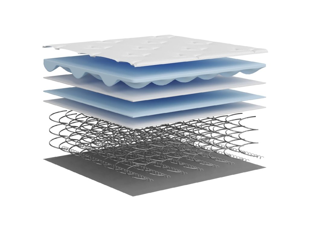 - Výplňový materiál: taštičkové pružiny, pěnový molitan, izolační podložka