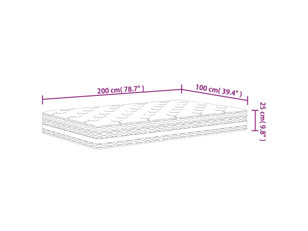 - Rozměry: 100 x 200 x 25 cm (Š x D x T)