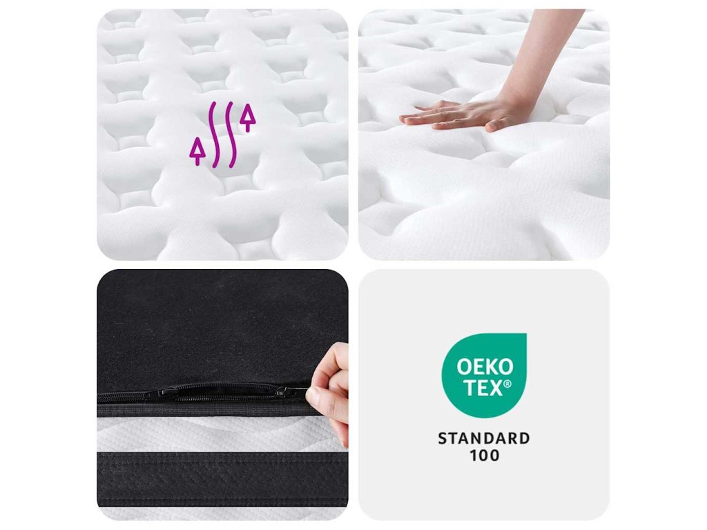 - Individuální opora: Každá spirálová pružina s látkovým povlakem reaguje na tlakové body, poskytuje cílenou oporu a rovnoměrně rozkládá tlak na páteř.