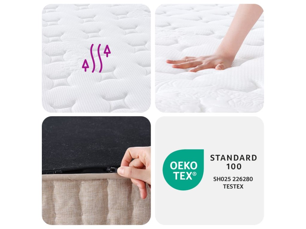 - Snadné použití: Ruční zvedák matrace poskytuje bezpečný a snadný způsob, jak zvednout a přemístit těžkou a objemnou matraci. Pružinová pěnová matrace je navíc vybavena dlouhým zipem, který usnadňuje sejmutí potahu za účelem praní.