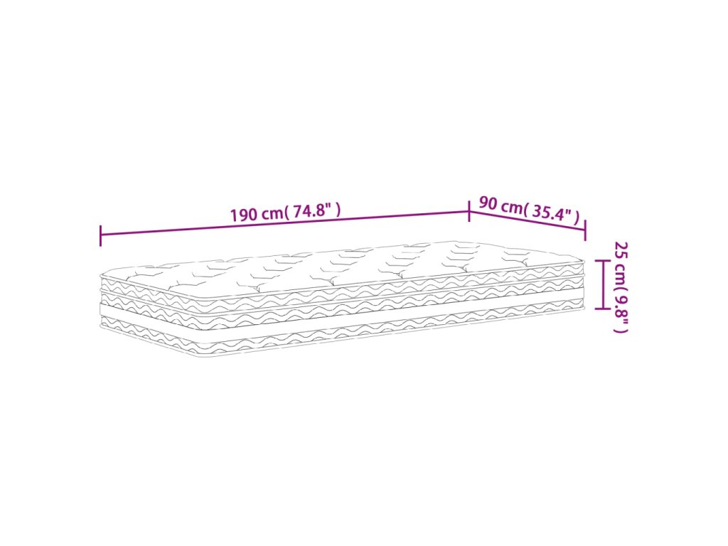 - Rozměry: 90 x 190 x 25 cm (Š x D x T)