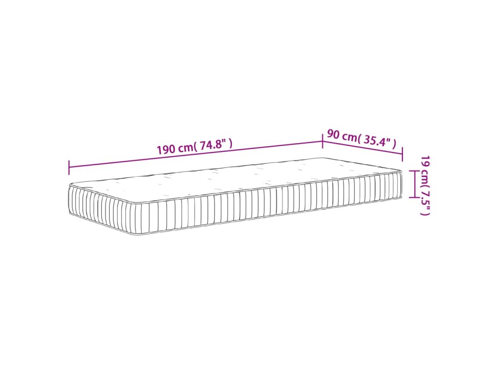 - Rozměry: 90 x 190 x 19 cm (Š x D x T)