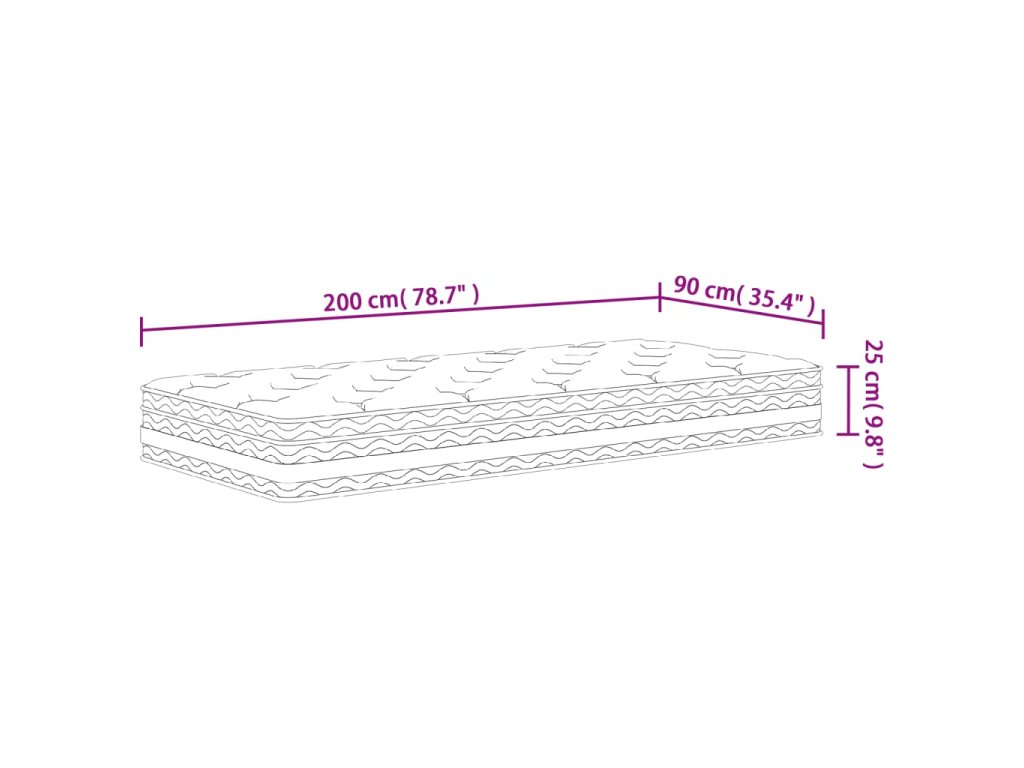 - Rozměry: 90 x 200 x 25 cm (Š x D x T)